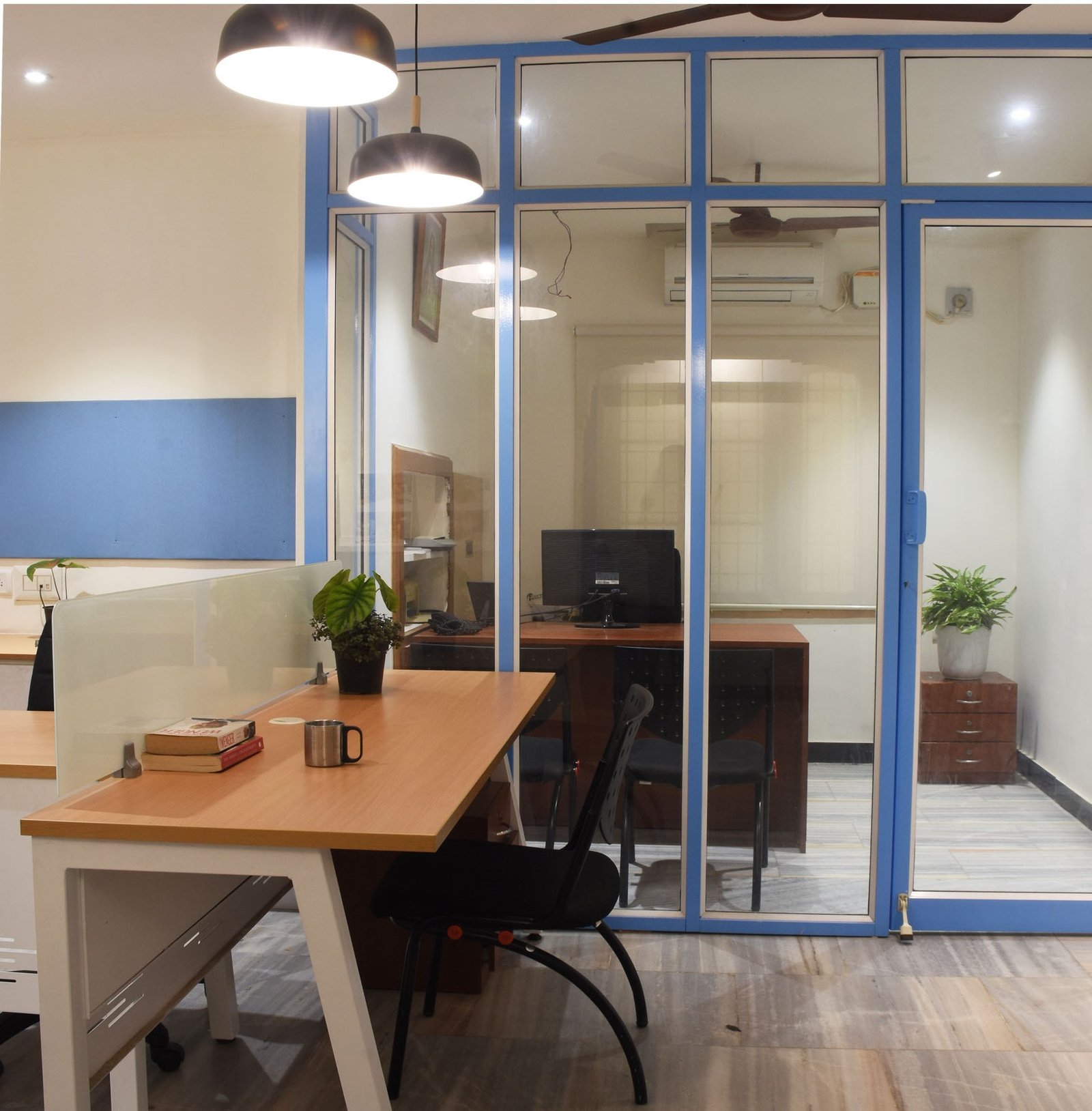 A work space for a neighborhood newspaper in Mogappair, Chennai. The requirement was to rearrange the layout and lift up the space which suits the current work scenario. The workstations and furniture are replaced by lighter and ergonomically oriented pieces in order to reduce the floor and visual chaos. Illumination has been strategically catered to by promoting natural light and incorporating task lamps to eliminate the light clutter.